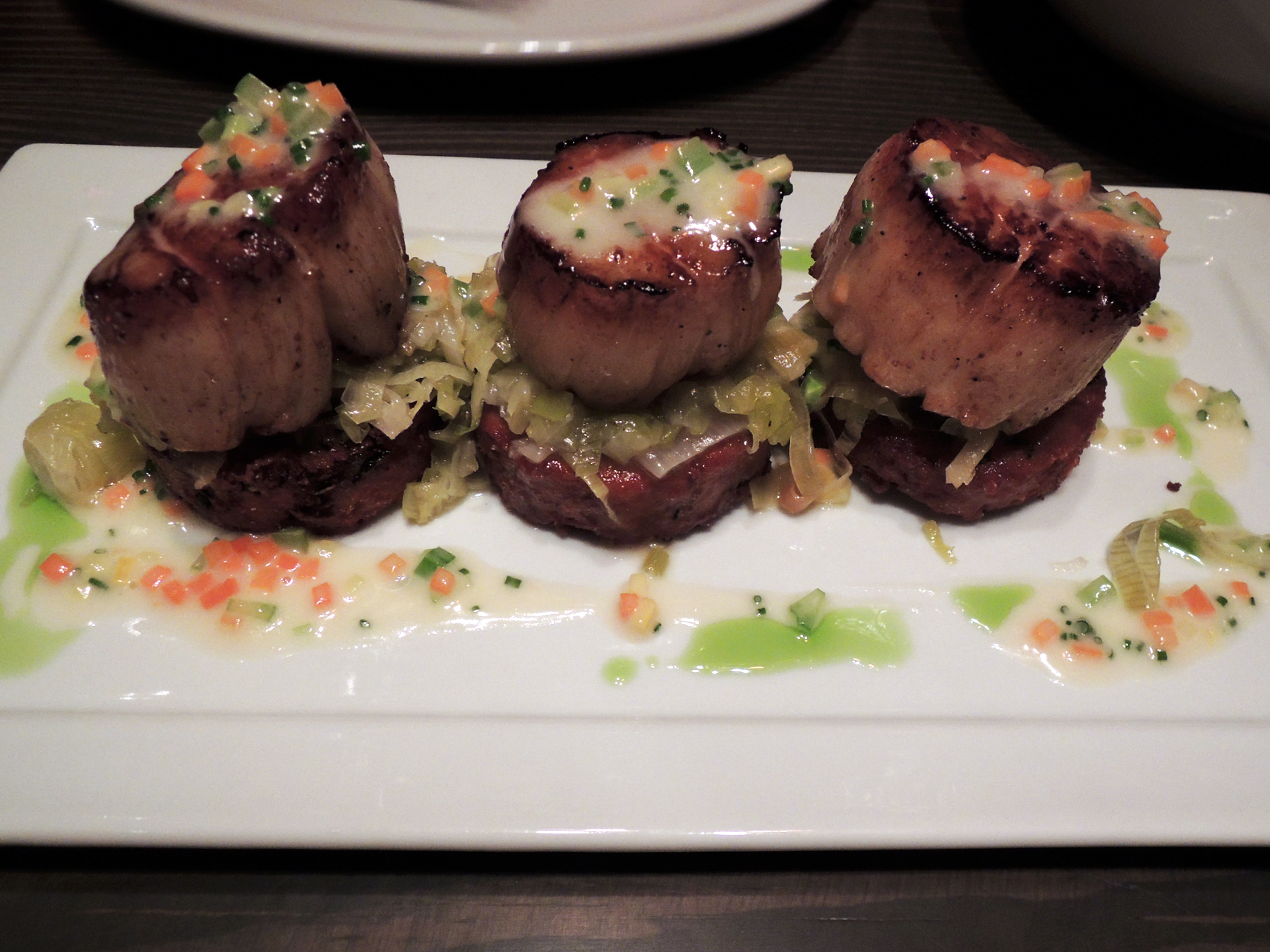 Blue Ribbon Rustic Kitchen Diver scallops Blue Ribbon Rustic Kitchen Diver scallops on top of zucchini cakes