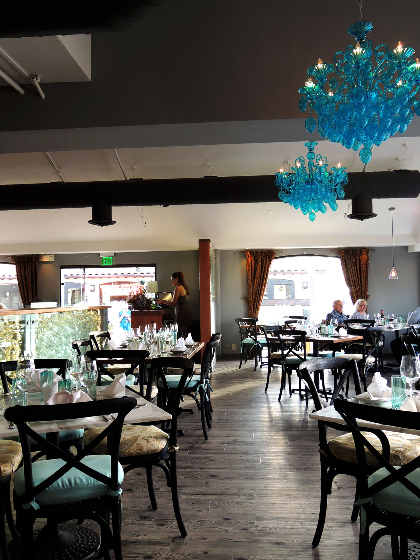 Blue glass chandeliers Iberico Spanish Bistro